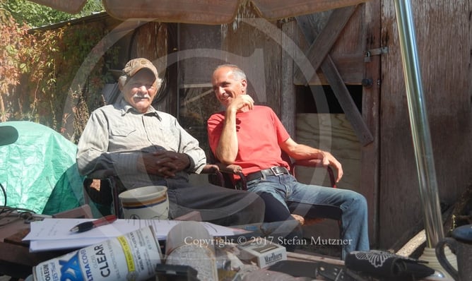 Blue Cloud (Sonny) and me (Stefan, the writer of the book) in front of his shed.